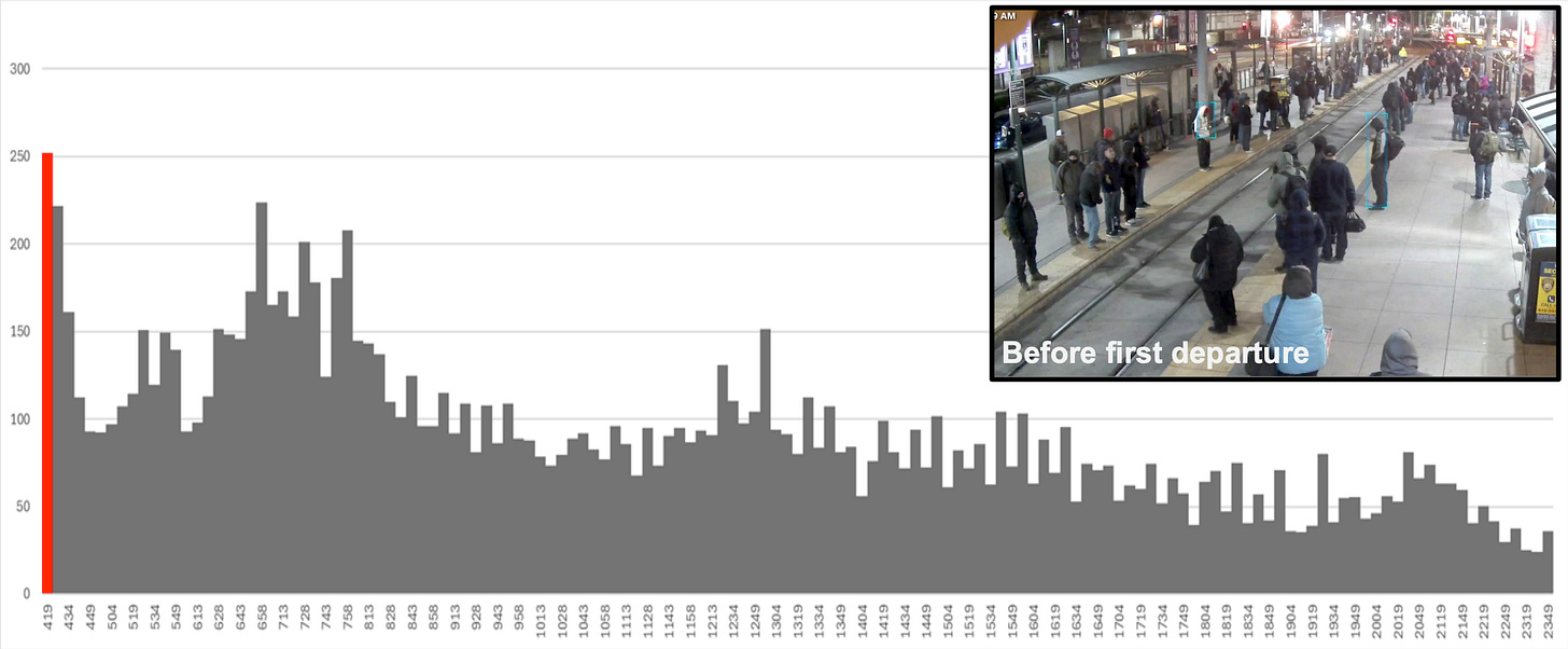 In a presentation to the MTS Board, staff highlighted the importance of the Blue Line corridor and of night and early morning service along the corridor. About 2/3rds of Trolley ridership is along the Blue Line, and if it were a standalone light rail network, it’d have the 5th-highest light rail ridership in the nation, ahead of Dallas, Portland, and Salt Lake City’s entire rail networks. The presentation also noted that ridership at San Ysidro-International Station spikes in the early morning, as commuters crossing the border enter the United States. The first service northbound towards San Diego, at 4:19 AM, is the busiest of the entire service day.
